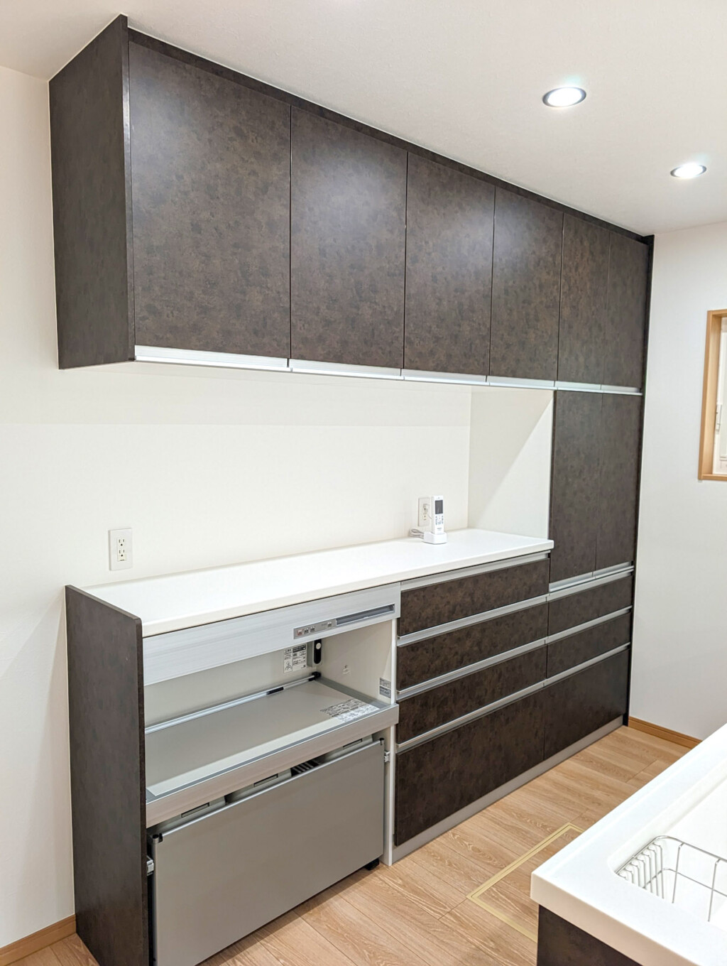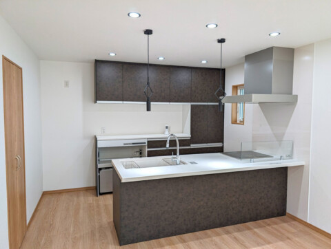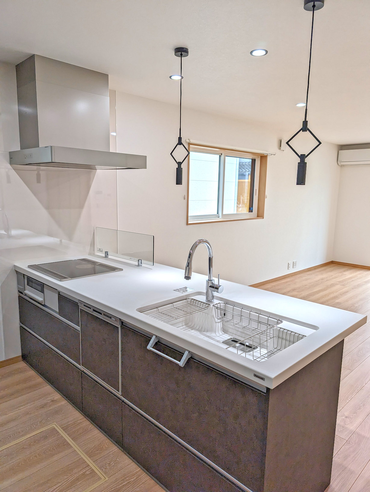 ■フルフラットキッチンを採用、リビングの様子を見て調理できます!